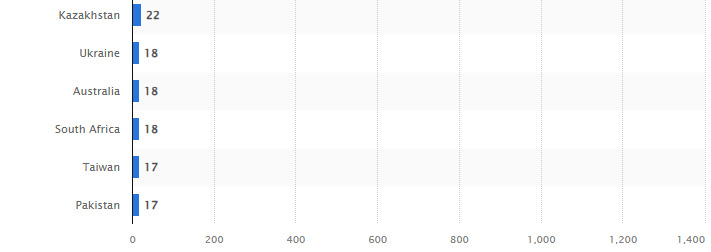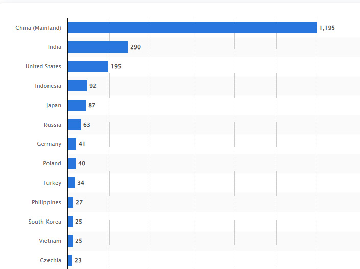 From Statistica, Countries and territories with the largest number of operational coal power plants worldwide as of July 2025