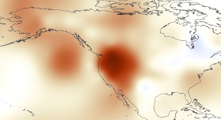 How temperatures across the U.S. varied from normal during July 2015, with red showing warmer temperatures and blue cooler.