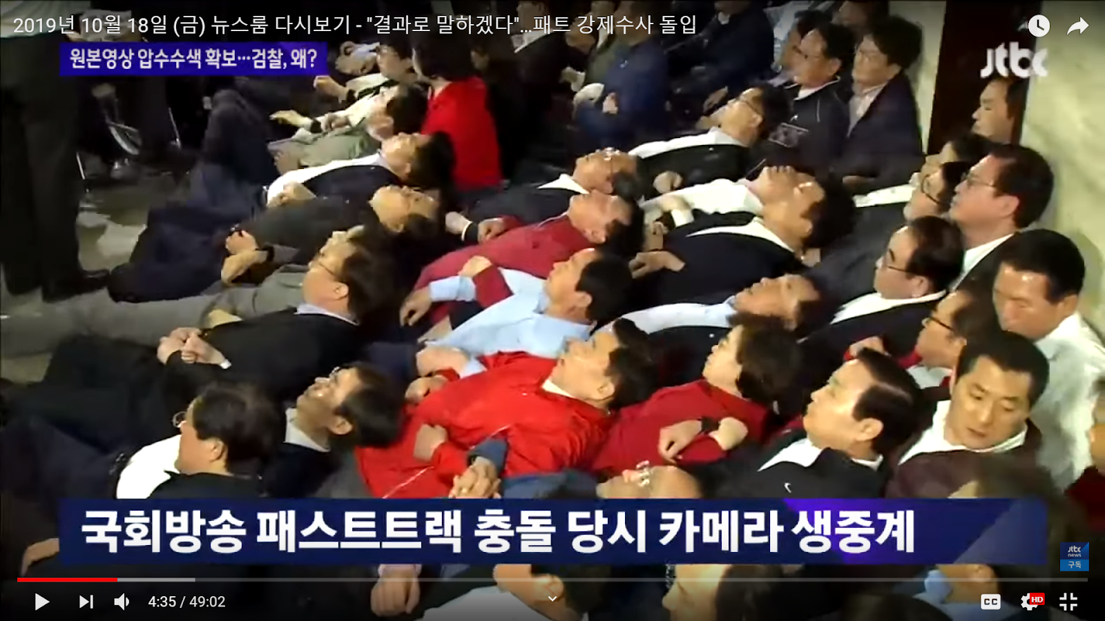 (Source- JTBC News 10.18) National Assembly Broadcast caught the fast track confrontation live on camera while it happened. LKP party members lead by Representative Na obstructing the National Assembly. Complete unedited archive videos are sought in the prosecution's search warrant.