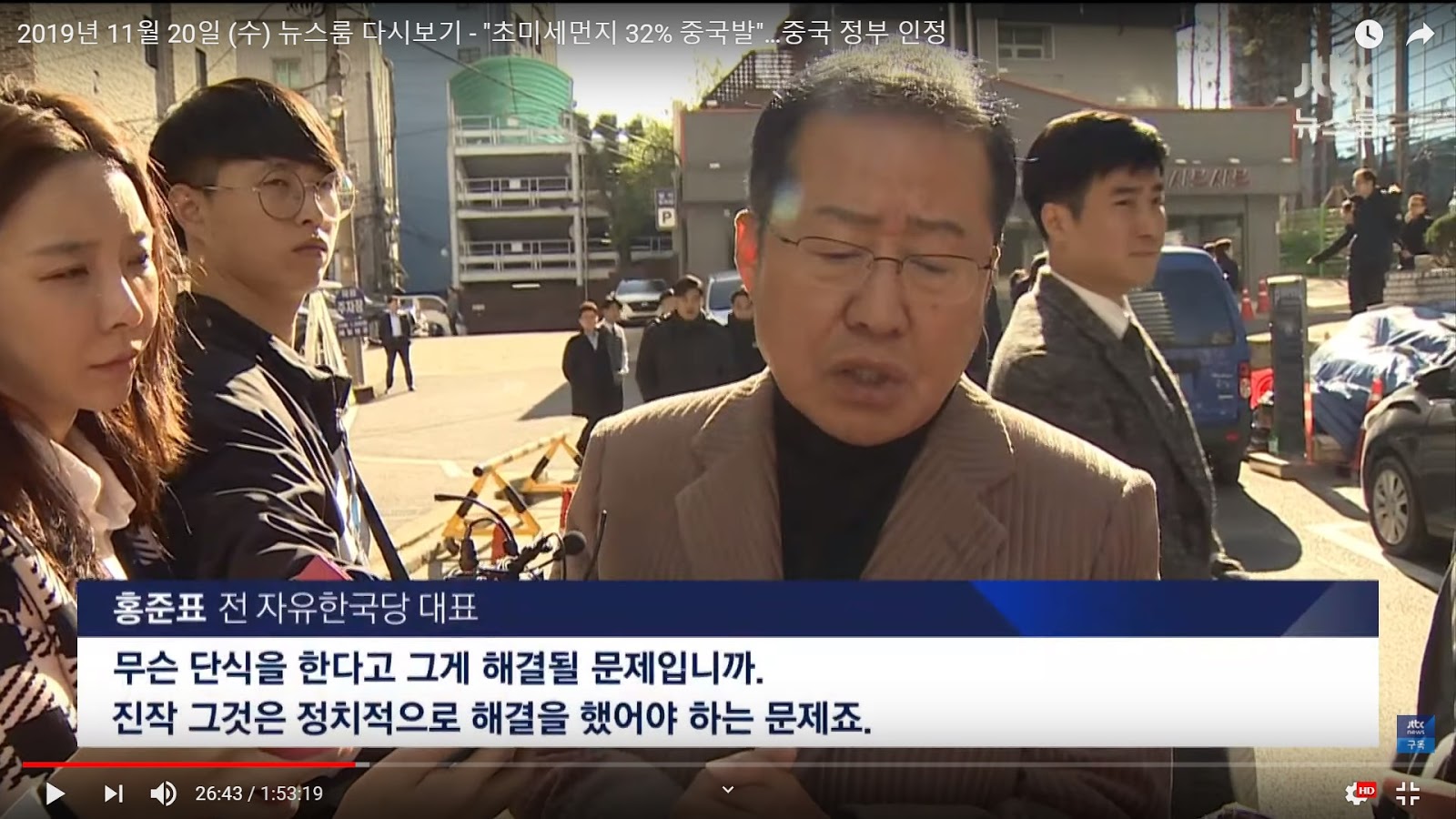 (Source- JTBC News, 11.20) Hong Joon-pyo, "What sort of hunger strike? Will a hunger strike solve a problem? Before that there is the problem that must be politically solved."