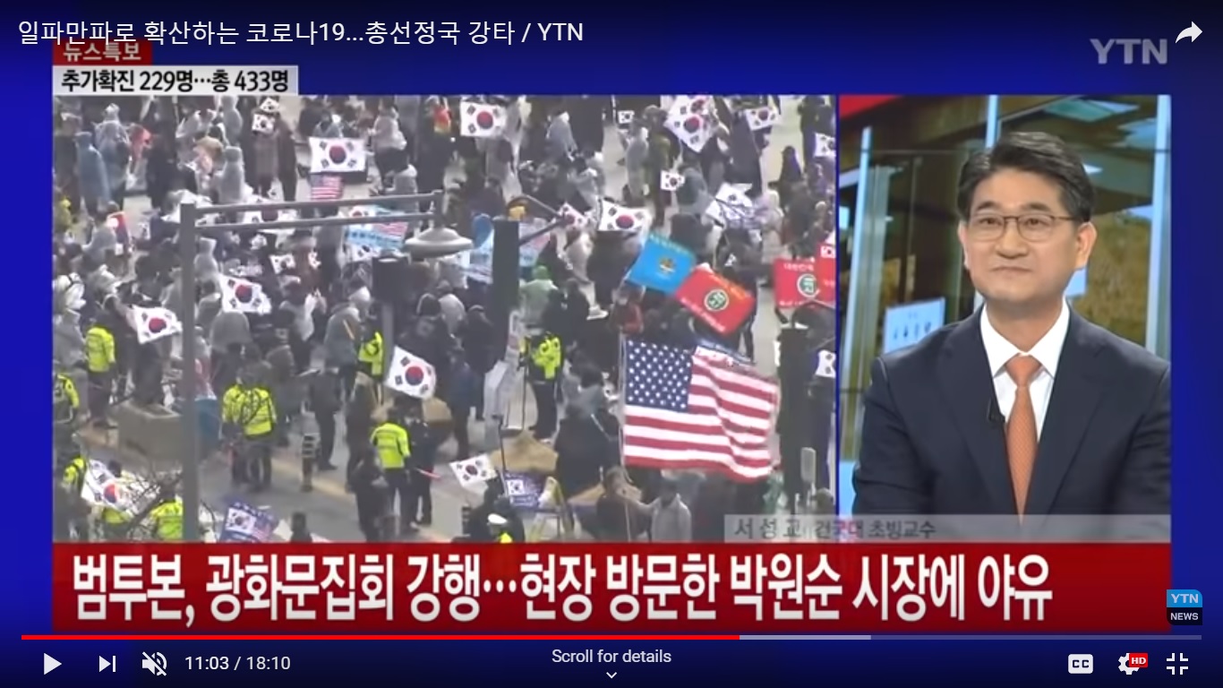 (Source- YTN News 2.22) Thousands of right wing demonstrators in Seoul at Gwanghwamun plaza creating a potential threat to public health. The government administration worries it may result in another cluster of covid 19 cases similar to the New Heaven and Earth outbreak in Daegu and Gyeongbukdo.