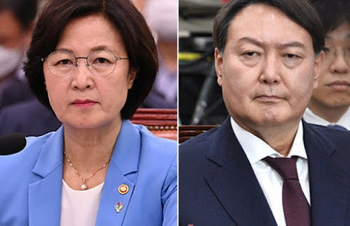 (Image Source- 열린공감TV) Chu Mi-ae Justice Minister of South Korea (left) and Prosecutor General Yoon Seok-yeol, her insubordinate subordinate.