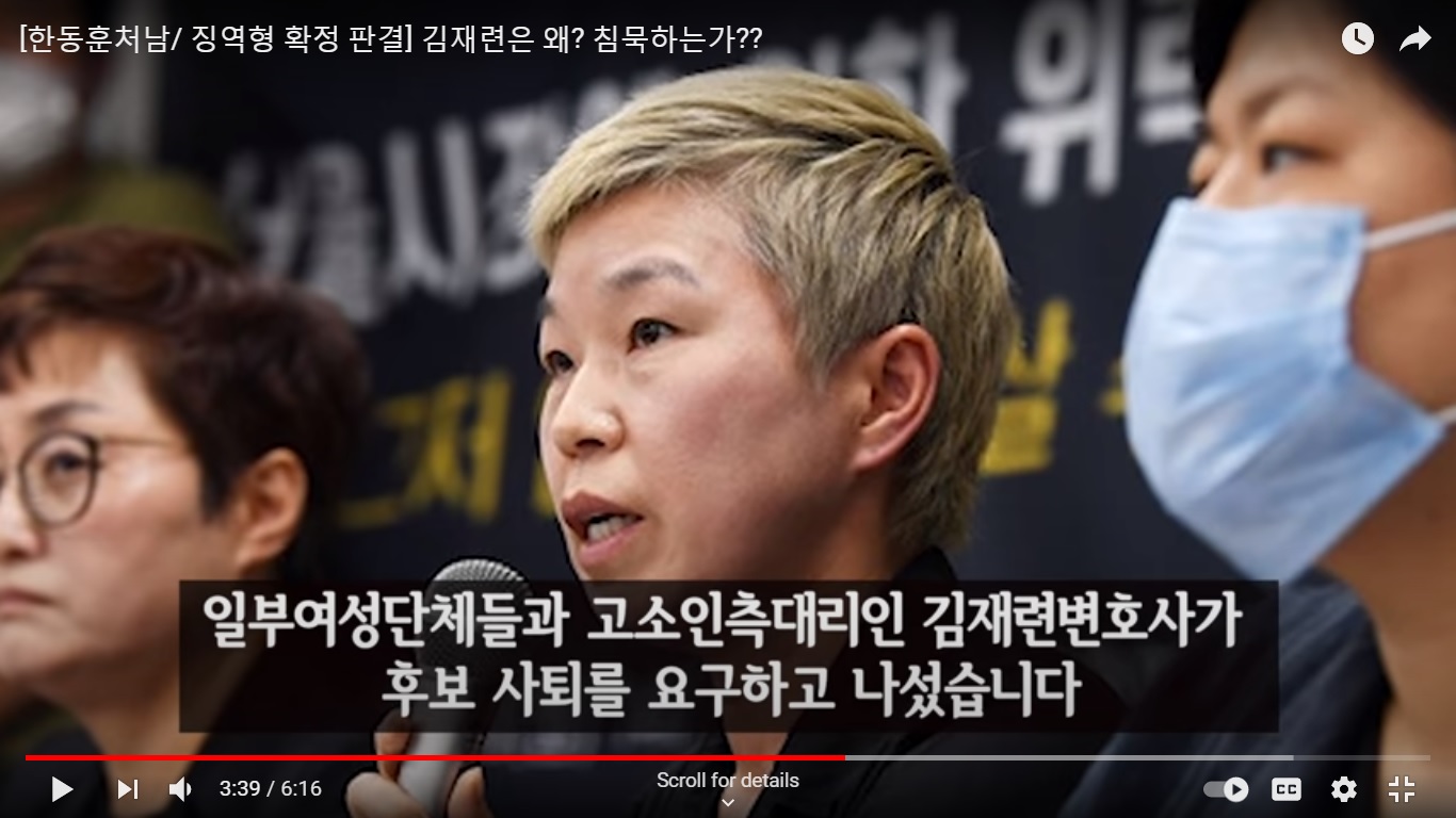 The right wing faction of the Me Too movement in South Korean nominally led by private attorney Kim Jae-hyun, has been, not unexpectedly, silent about the sexual violence cover-up by the Yoon faction in the justice world while renewing their proxy campaign against the deceased Mayor Park Won-soon as a form of noise jamming. This faction of the Me Too movement representing conservative elements, is the proxy for the Gook Min eui Him Dang's Na Kyung-won, who is a candidate for Mayor of Seoul. Na Kyung-won also called for the democratic mayoral candidate Woo Sang-ho to withdraw from the race because of positive statements about deceased Mayor Park. Kim Jae-ryun had accused the former Mayor Park of sexual assault and sexual abuse of his secretary while in office. No official investigation has found any wrongdoing by former Mayor Park.* Na tries to portray herself as the women and families' candidate as she literally has nothing to offer otherwise as the corrupt scion of authoritarian aristocrats from the days of dictatorship. She is a former judge, and her husband is currently a sitting judge who allegedly has stalled and diverted criminal complaints against Yoon's family. Prosecutors recently nolle prossed criminal cases against Na, otherwise she may have been rendered ineligible for office. Na failed at re-election to the National Assembly in April 2020, in large part because of her coordination of brawls and sit ins at the National Assembly designed to block legislation to reform administration of criminal justice in South Korea.