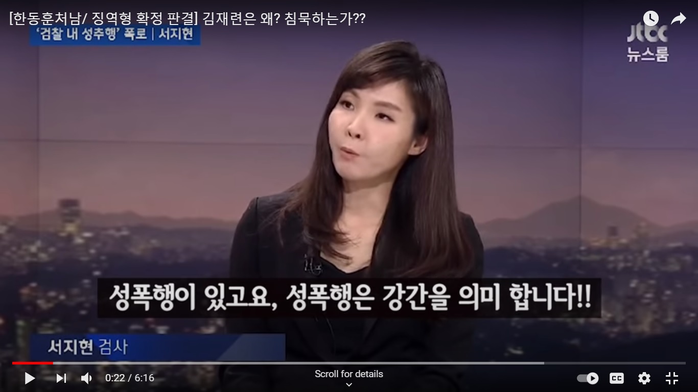 (Source- 타이거행크TV, 2.20 youtube; outtake orig source jtbc news) Prosecutor Seo Ji-hyun: "Yes sexual assault, but the meaning is rape."