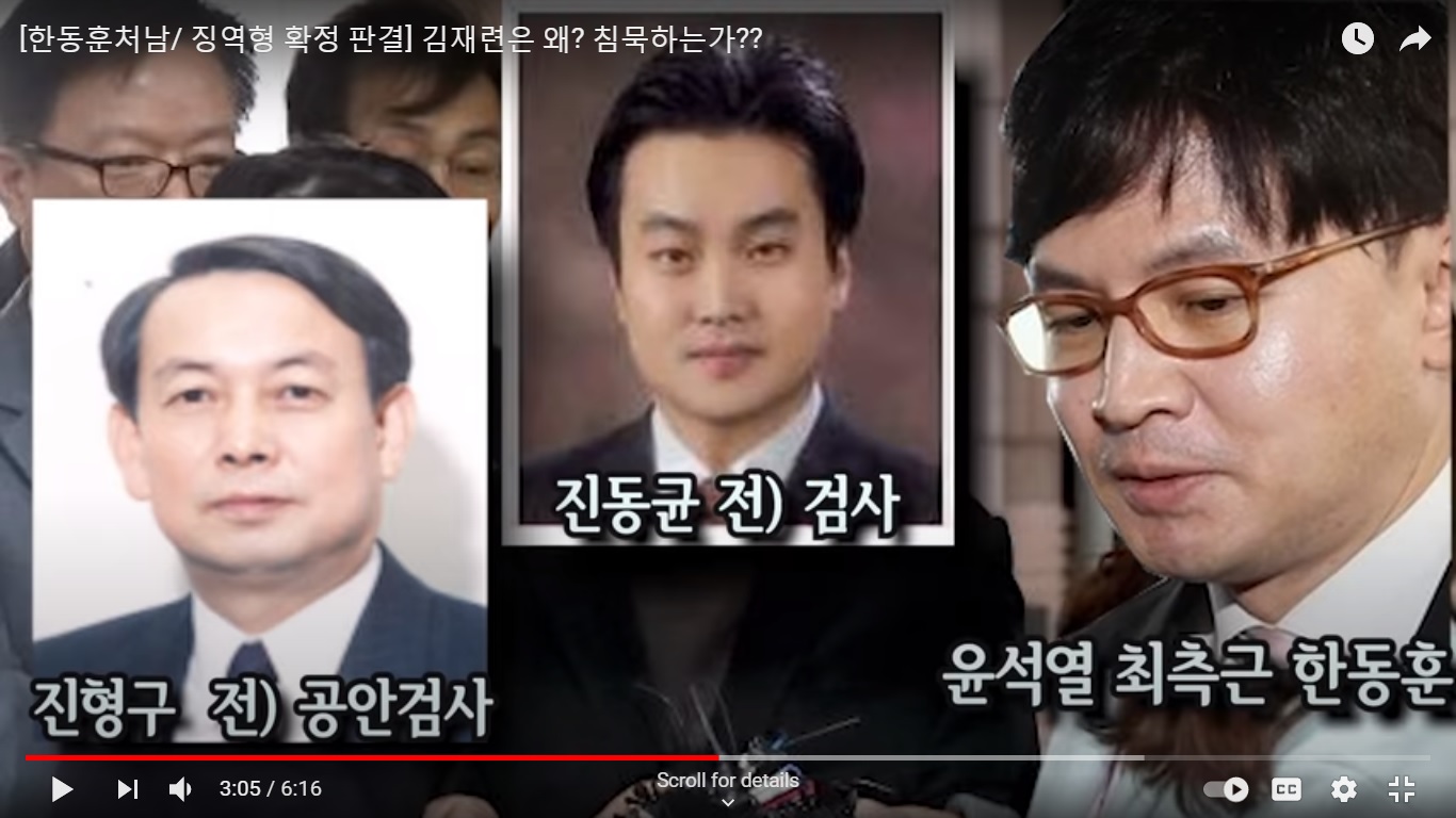 (Source- 타이거행크TV, 2.20 youtube) Jin Hyung-ku, former prosecutor and defendant's father, (left); the defendant Jin Dong-kyun (center); and (right) Han Dong-hun, ( a close associate of Prosecutor General Yoon Seok-yeol), who is currently under investigation for misconduct in the so called Channel A News scandal.