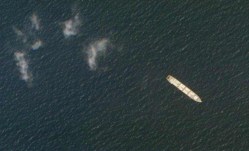 This Oct. 1, 2020, satellite photo from Planet Labs Inc. shows the Iranian cargo ship MV Saviz in the Red Sea off the coast of Yemen. The Iranian cargo ship, believed to be a base for the paramilitary Revolutionary Guard that has been anchored for years in the Red Sea off Yemen, has been attacked, Iranian state television acknowledged Wednesday, Wednesday, April 7, 2021. (Planet Labs Inc. via AP)