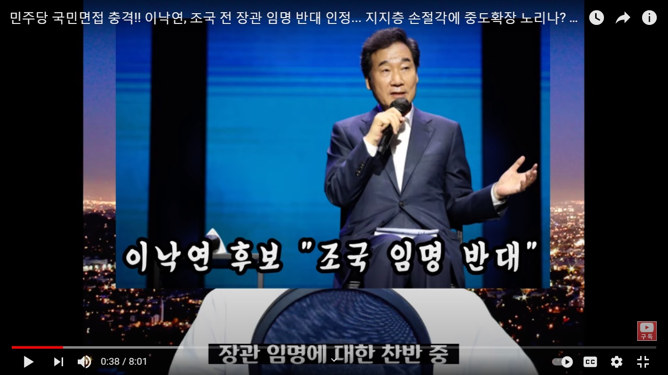 ( Source- 언론 알아야 바꾼다 7.3 youtube) Lee Nak-yeon, "I was against the appointment of Cho Guk (as Justice Minister)."