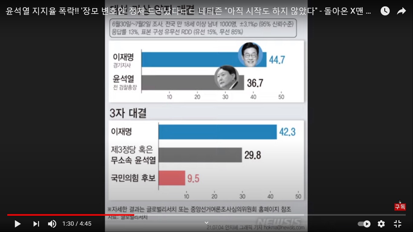 ( Source- 언론 알아야 바꾼다 7.3 youtube) '리서치뷰'의 충격 여론조사 발표!! etc. Research Review shocking public opinion survey results...