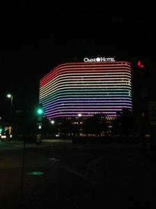 To mark Supreme Court rulings on DOMA and Prop 8, the Omni Dallas Convention Center Hotel was lit in rainbow colors Wednesday night.