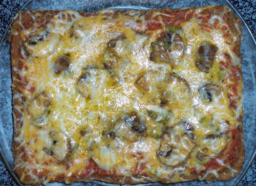 (54,488 posts)from the olive oil and black pepper on the underside, to whole wheat crust with cornmeal and oatmeal and a tad of sugar to aid the baking powder and olive oil, to homemade sauce with garlic, oregano, rosemary, marjoram, basil, onions, to the impromptu Walmart Fiesta blend topped with olive oil, black pepper, and salt. All at 405 degrees for 30 minutes (before adding cheese).