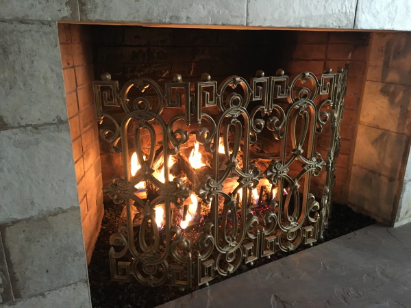 Here's the fireplace from dinner at my friend's last night. I so wish I'd gotten this done in my own house. I have a fireplace but have to build the fire. With this new gas connection, she just has to turn it on and voila, a fire like this. Very nice for ambiance in dining.