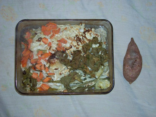 It's in there! With cabbage, greens, noodles. The potato I forgot was still in the oven from yesterday. So it's been baked twice. This week I grabbed a $3 whole chicken! There's a food inflation fighter. When chickens were scarce about 7 or 8 years ago I was shocked one day to find them at $10-12. Ordinary, non-organic, house brand. So that I still find them at $6 and under is good news.