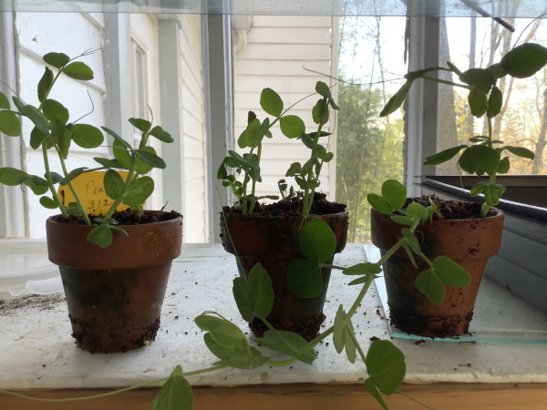 Snip off the tendrils and it adds a little something extra to a salad. BTW, you can use dried peas from a plastic bag right out of the kitchen pantry. You don't even have to buy seeds to do this. I soaked mine for a day first, then put them in the little terra cotta containers.