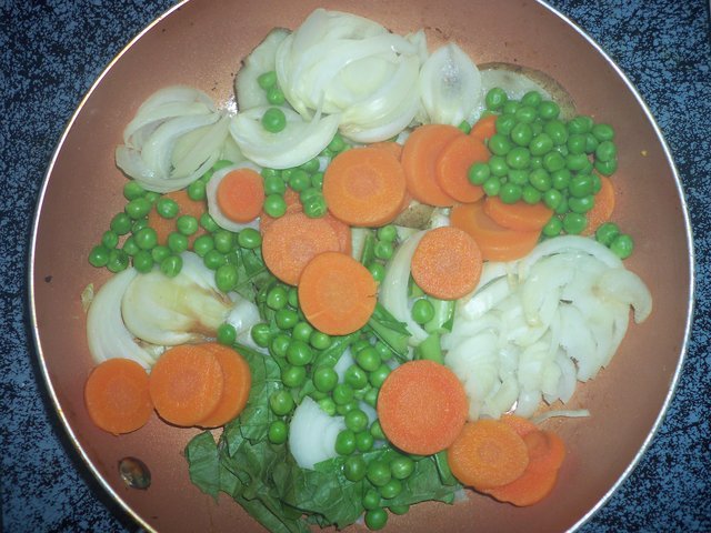 (23,174 posts)Sliced potatoes, whole baby carrots, chopped frozen broccoli, onion, garlic and spices (curry, turmeric, paprika, Badia Everything, salt and pepper) in the pan under the broiler rack.