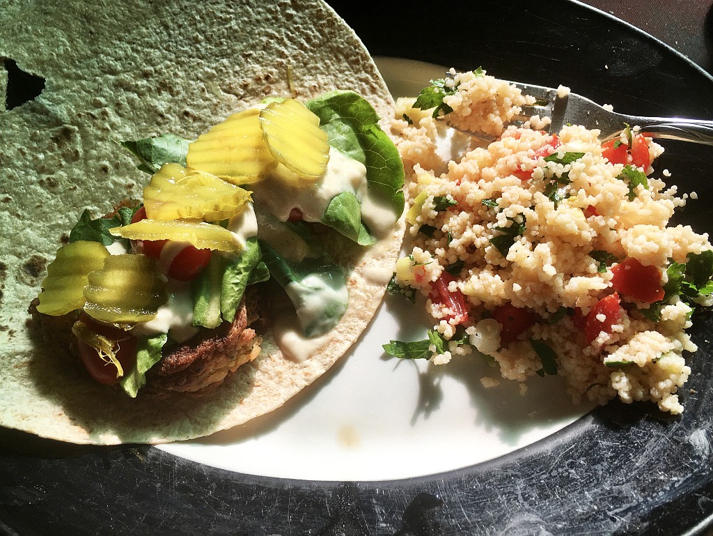 Made the tabbouleh (with couscous) earlier today, and just got the falafel mixed in the food processor and have it sitting in the fridge for a bit.