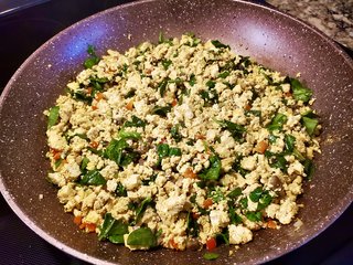 Here is the recipe that I used although I added a few more veggies: https://chocolatecoveredkatie.com/tofu-scramble-recipe/