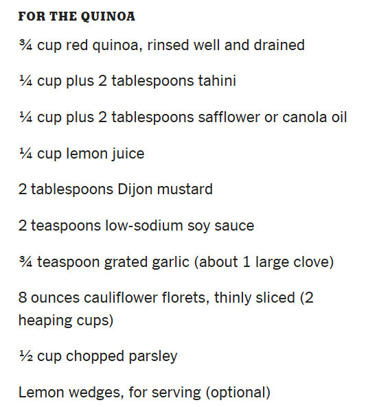 To the quinoa, add mushrooms, cauliflower, parsley and 1 cup of the dressing and mix well. Season with salt and pepper.