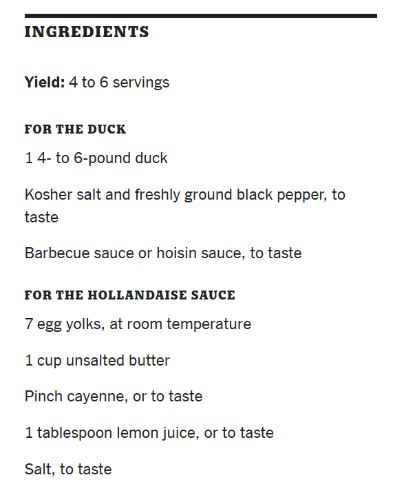 This is a hack of an old recipe from David McMillan and Fred Morin of the restaurant Joe Beef in Montreal, who match sea scallops with pulled pork and hollandaise sauce for a delicious dish. For reasons of habit, taste or happenstance, I started making it with duck instead. It seems like a lot of work — two species, a fancy sauce — but a lot of the cooking is unattended, and the sauce, you’ll see, is quite easy to pull off, at least the second time you try. The resulting meal is excessive and fantastic. It begs for a watercress salad with a bright, acidic dressing.