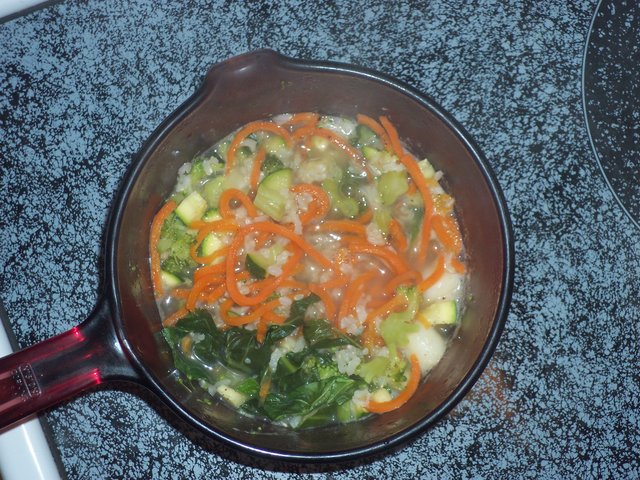 (54,498 posts)Rice, carrot, zucchini, broccoli, scallops, collards, spices all thrown in a pot.