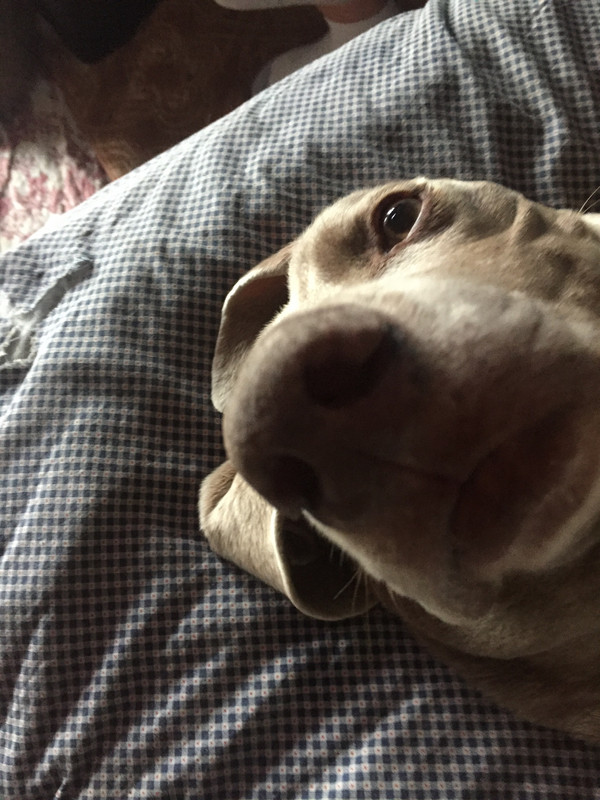 However, I do have a nice silvery Weimaraner that likes me very much. (Not as much of his Dad however ... #Daddys Boy)