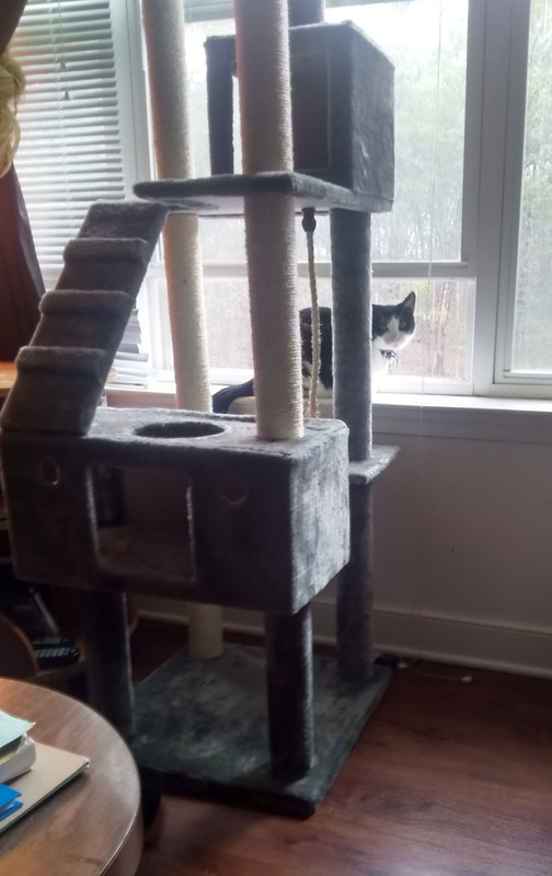 (13,351 posts)2 years. All the cat trees pretty much were out of range cost wise if I wanted to get a high up perch area. Othello likes to be up high he's a tree cat.