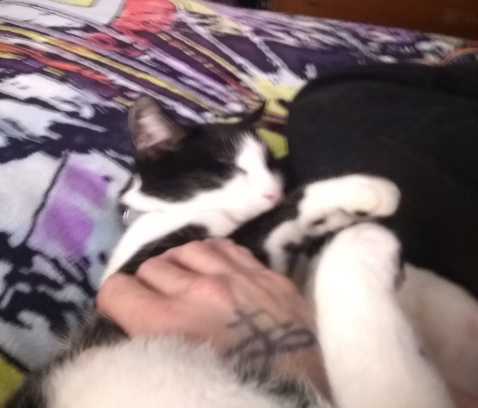 Had a bout of tiredness from my moderna shot, went to lay down and my sweetie Othello lays against me in the crook of my knees as I rub his belly.