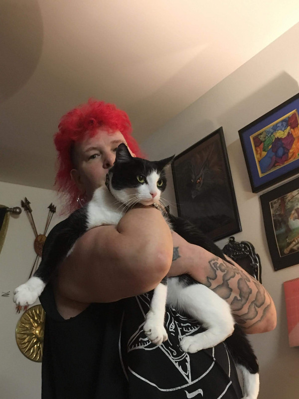 Sniffing Othello's fur as I write this. He's laying up against my face and neck,purring watching my phone.