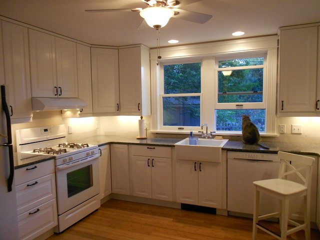 Jeoffry in newly-remodeled kitchen window (it doesn't look that neat any more, and yes, cats get on the counters):