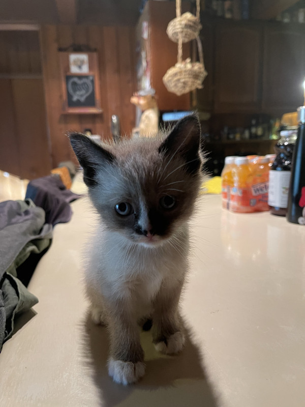 The new little guy is beautiful - look like a snowshoe, I think. Any music groups with snow in the name?