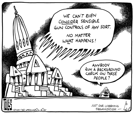 Where I get these there are also conservative cartoonists - the pro-gun control to anti-gun control ratio is like 20 to 1. I think the political cartoonists are on to something and you should consider what they have to say with their penetrating threat of ink.