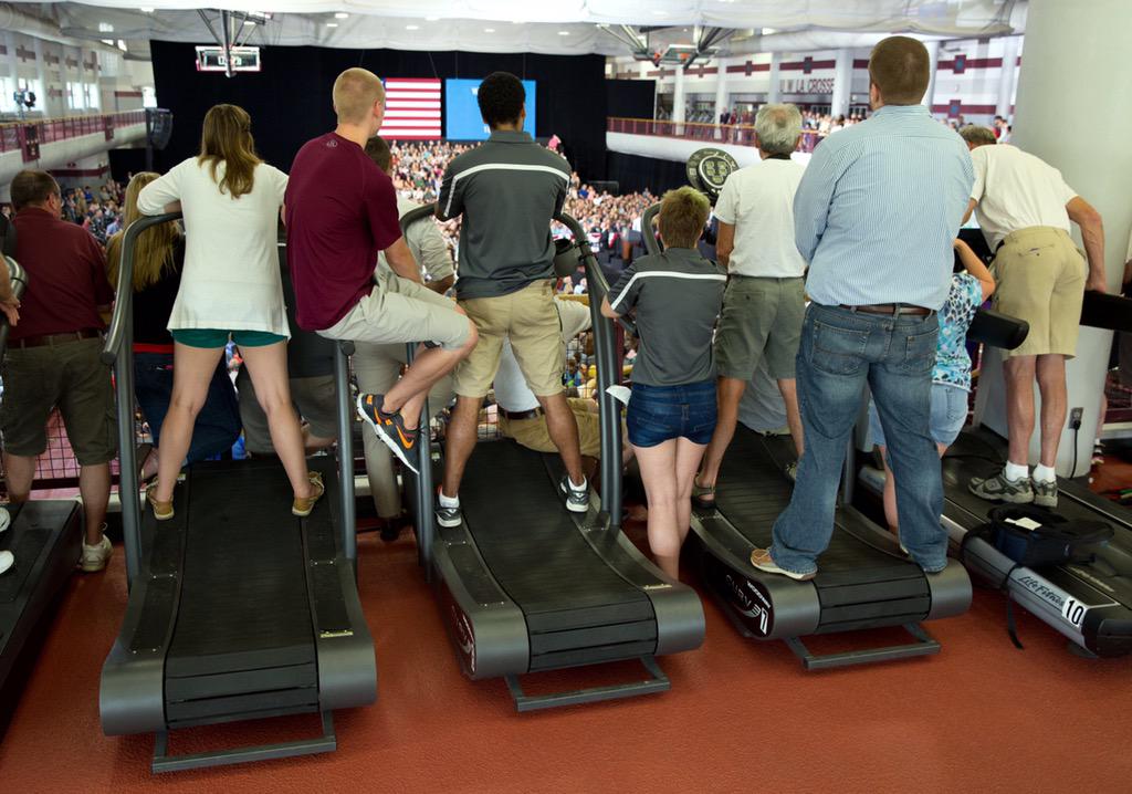 Standing room only for the President's speech at U Wisc at La Crosse today