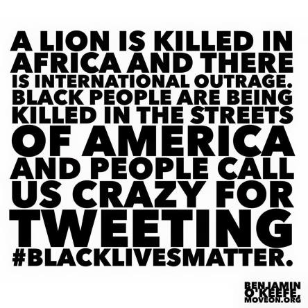 But I also believe there are many who care about the lion and little about black folks because if you get shot in America by a cop you must have done something to deserve it, no matter how many eye witness testimonies and videos say otherwise.