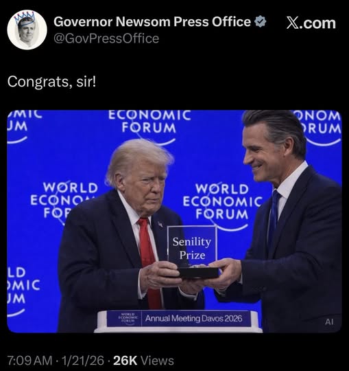 Related: About this forumGavin Newsome's office posted this after Trump's rambling Davos speech.