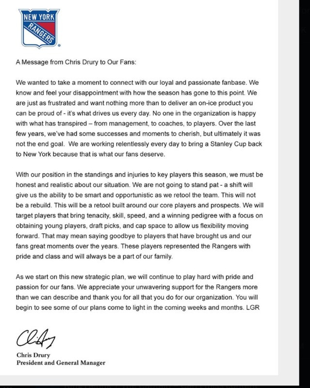 Time for the next re-build/re-tool, Panarin will not be with the team by end of season, other trades to come.