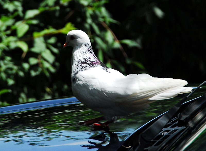 This particular bird seemed so comfortable around us, our automobile and cabin that I though she may be someone's pet, or a Homer that got lost.