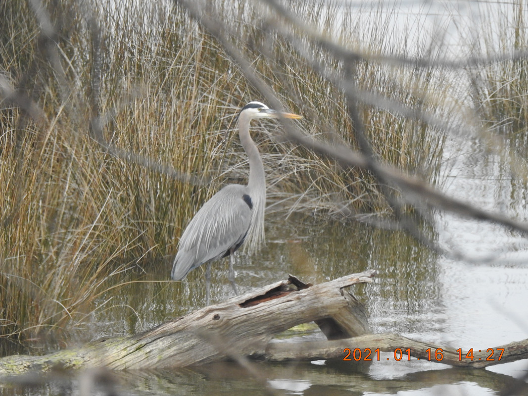 Love the whole composition you captured: The magnificent Bird, the water and fallen log and grasses.