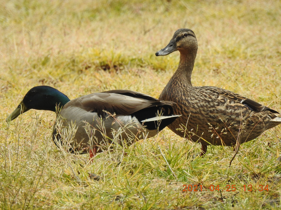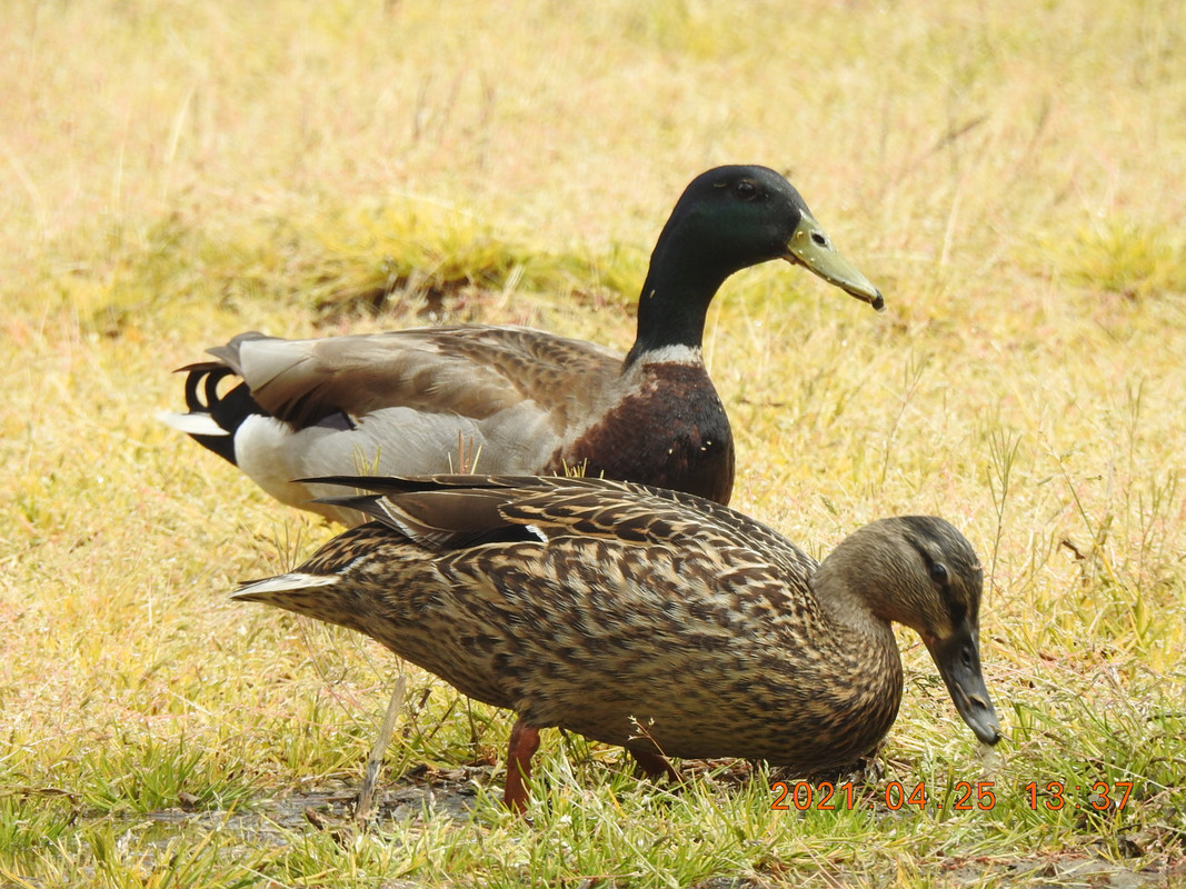 Mallard pair enjoying my neighbor's field (with small water pool.) (Original Post)