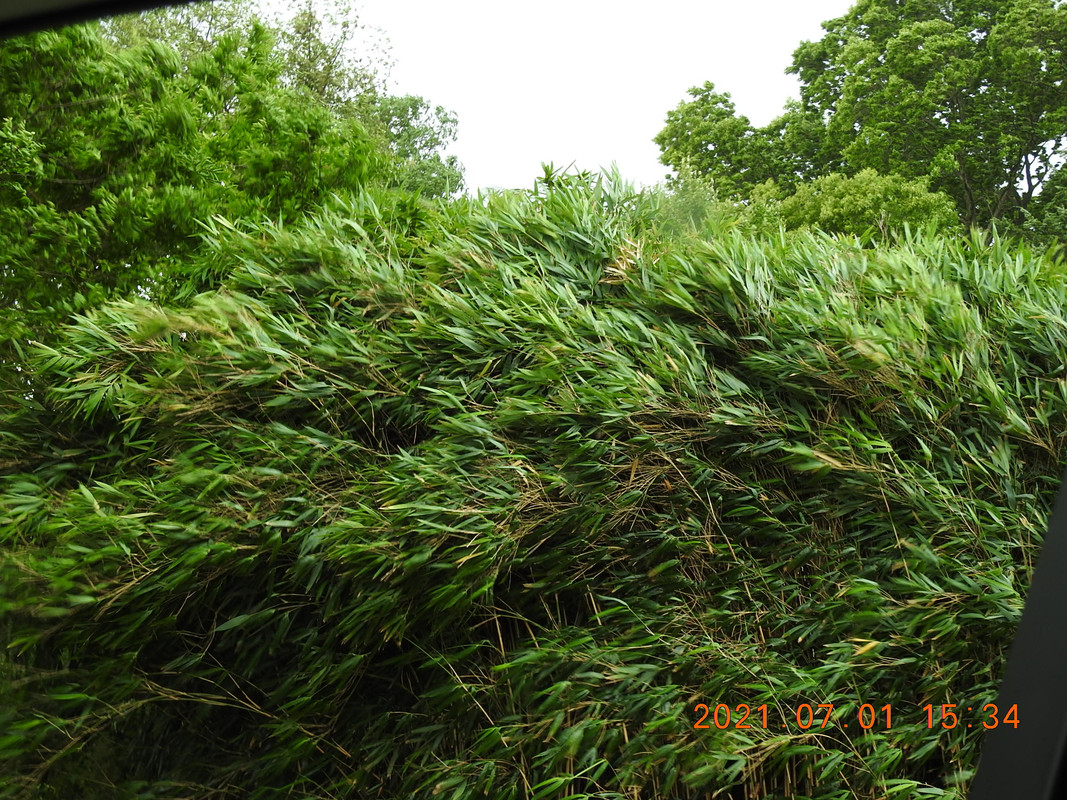 Between creek/nest and river, wind catches bamboo next to my house (and parking spot.)