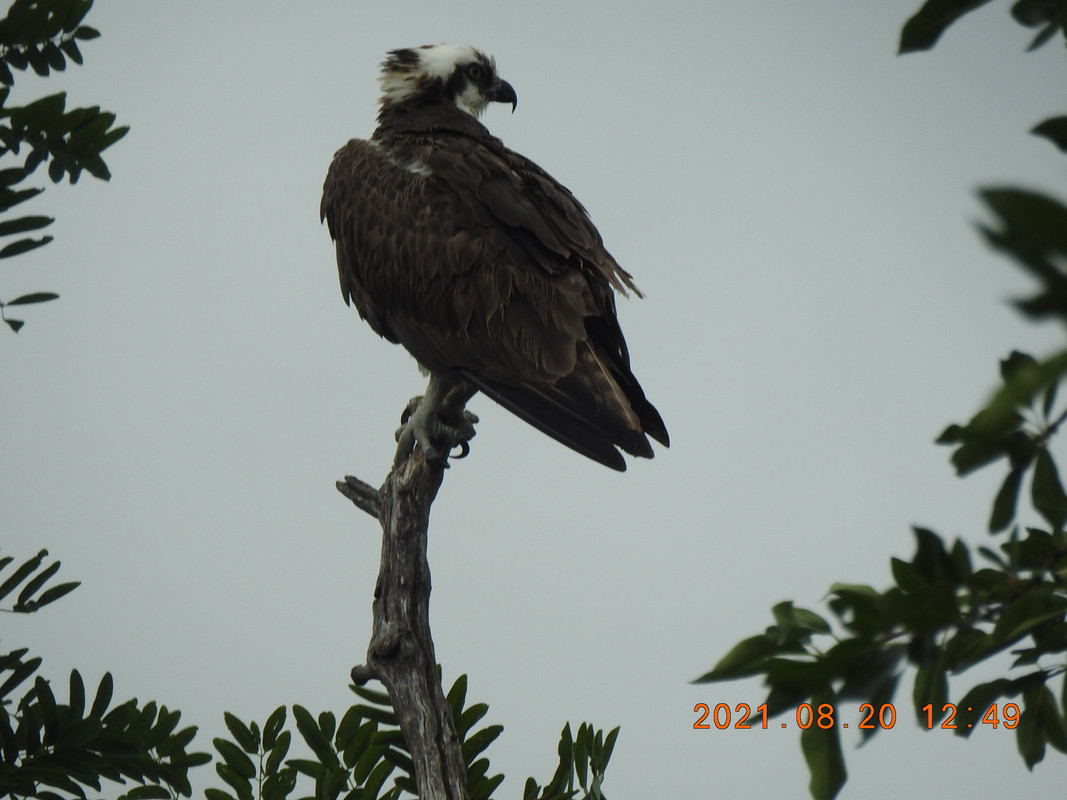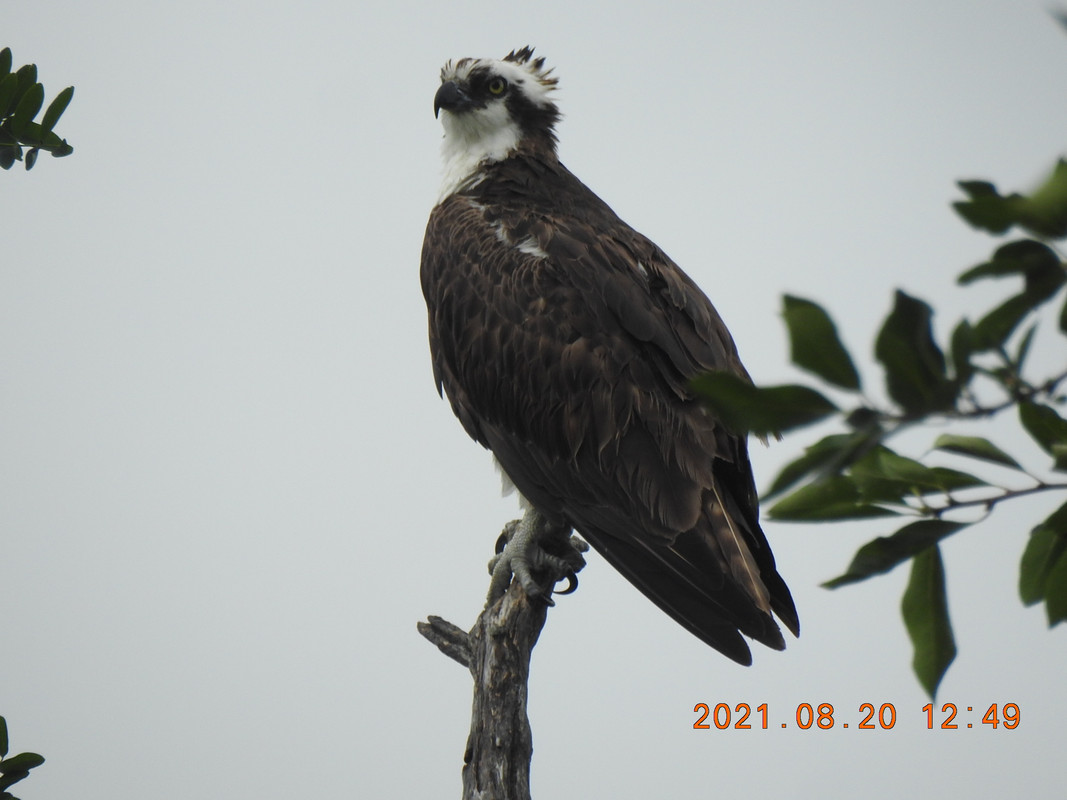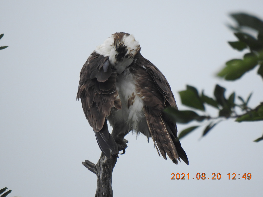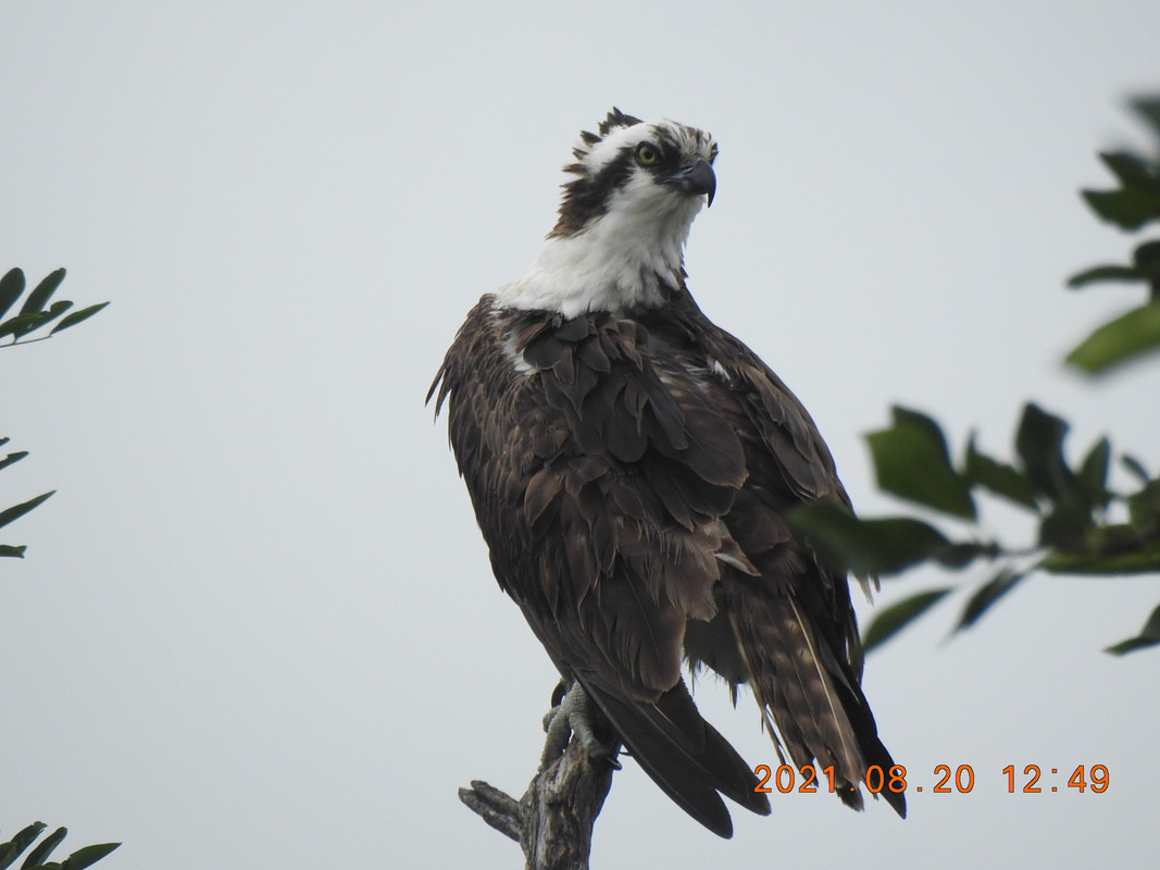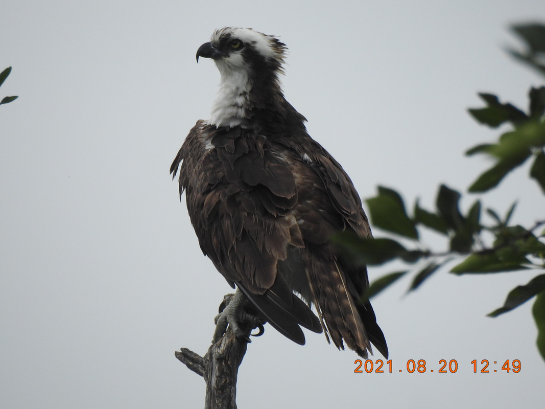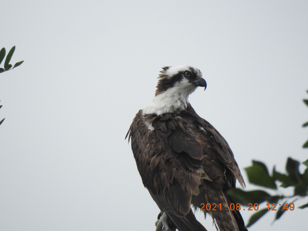 At 18 months, osprey achieve their full adult plumage. Juvenile osprey resemble the adults, but have buff-tipped feathers on the back of their upper body, giving them a speckled appearance, and the streaking on the breast tends to be heavier. As juvenile osprey mature, their eye color changes from brown to yellow. ((SO this is an ADULT?! Ya think? Haven't seen THEM for a while.))