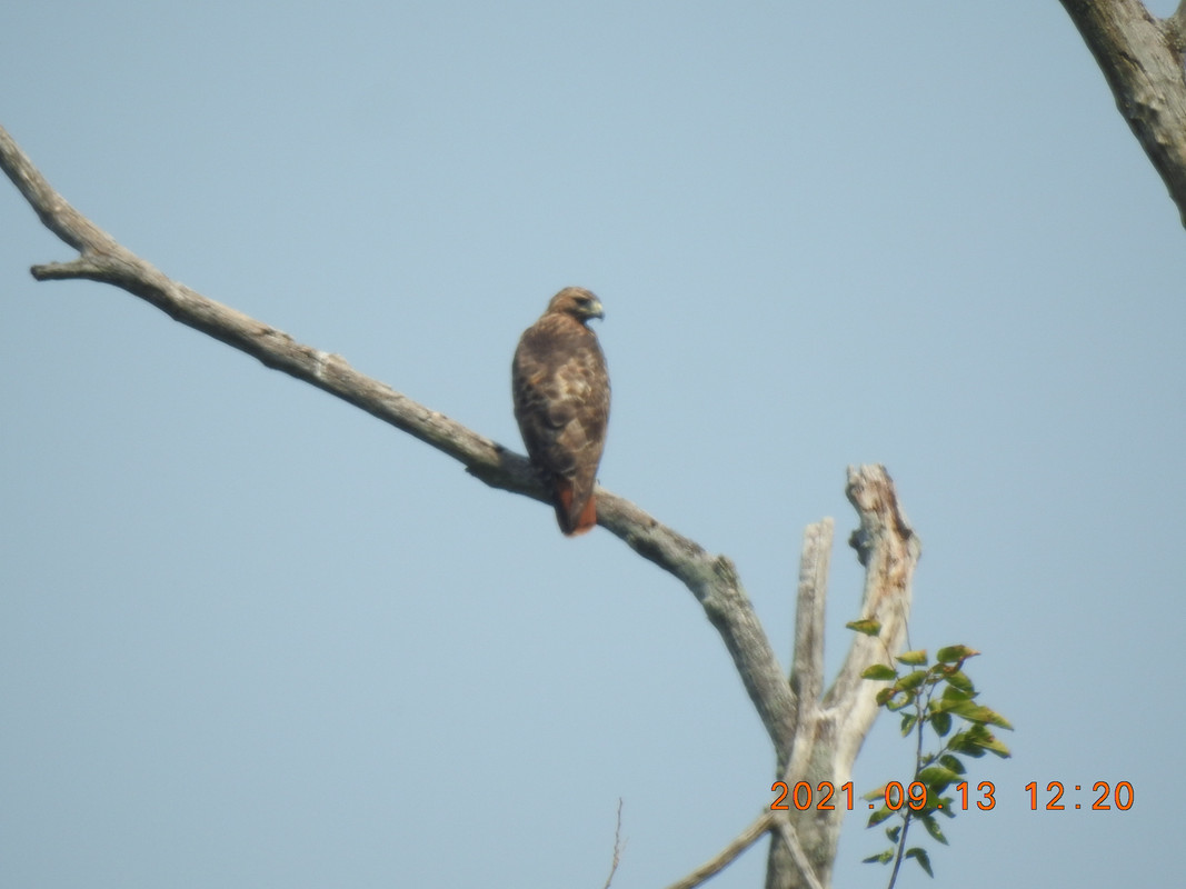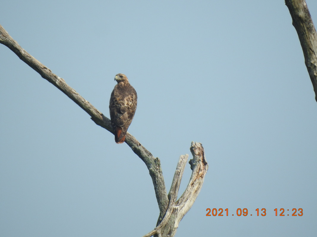 "Juvenile red-tailed hawks have a brown tail," he explains, "until they molt their tail feathers roughly one year after birth."