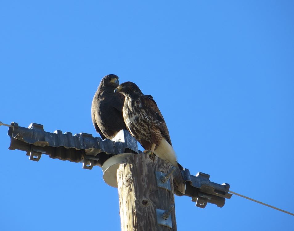 (4,393 posts)They hunt as a family unit, and coordinate their attacks. The dominant bird is the female of the group. While hunting, mostly desert smaller prey, she will direct the birds to scare the prey under a bush, into a tree, etc.