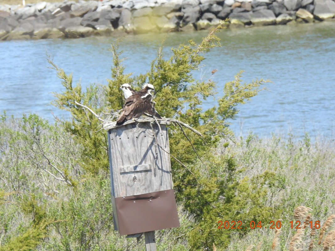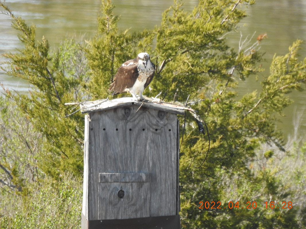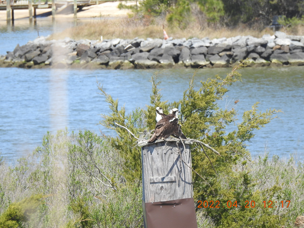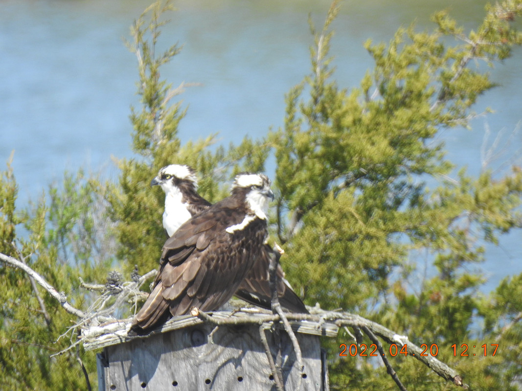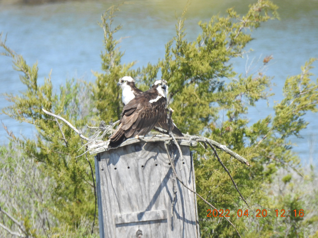 Those poor ospreys are too attached to the old nesting site for their own good. I can't help but think there must be many more suitable spots where they could nest, but they just can't seem to drag themselves away.