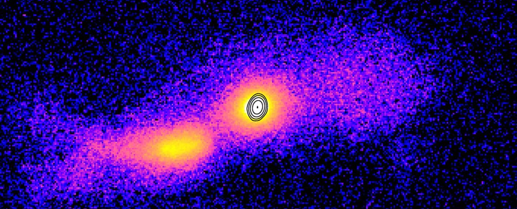 While galaxies have been caught mid-collision plenty of times before, this is the first time a jet of this kind has been seen spilling out of such a merger, and it could tell us a thing or two about how they arise.