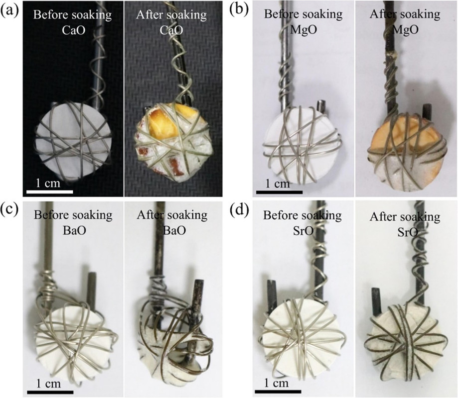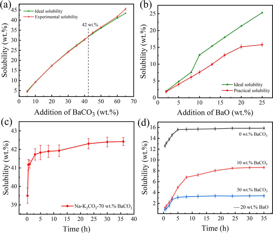 Quantitative tables of the solubility of these oxides are not given in the paper, but the general conclusion was that barium oxide was the most soluble and the solubility of its oxide and carbonate were evaluated in more detail along with the rate of dissolution, as shown in the following graphic: