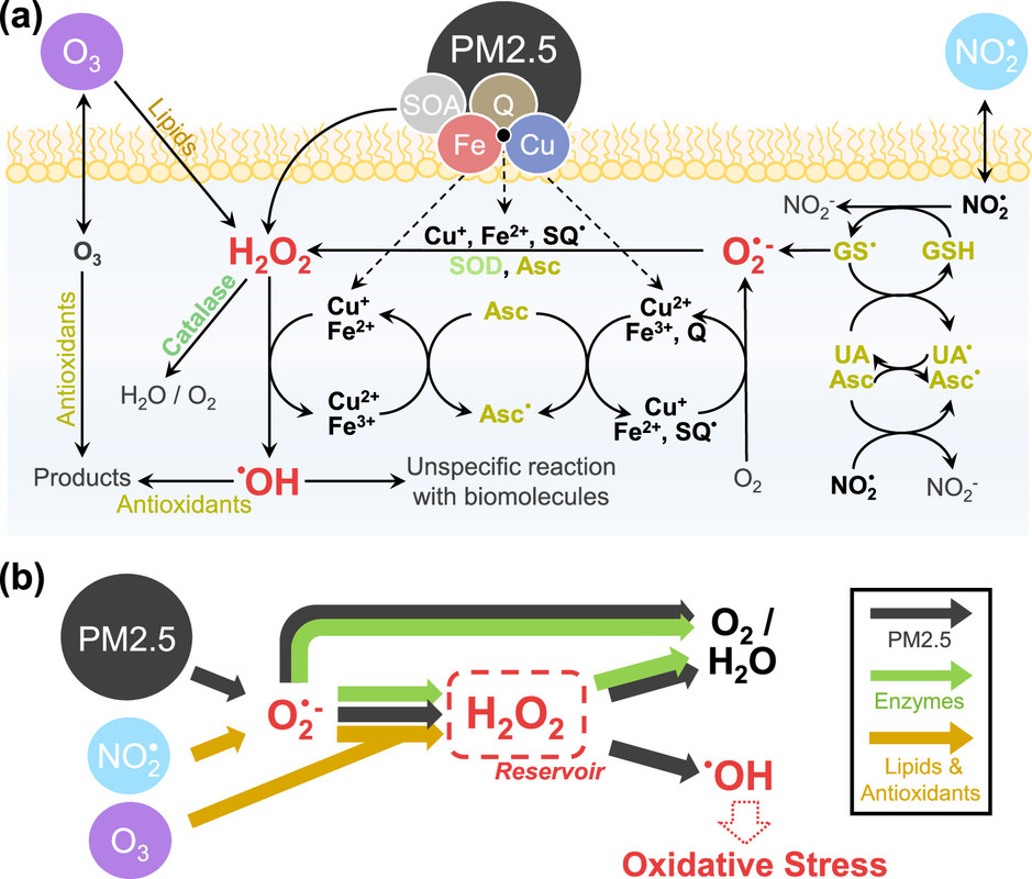Hydroxyl Radical Production by Air Pollutants in Epithelial Lining Fluid Governed by Interconversion and Scavenging of Reactive Oxygen Species (Steven Lelieveld, Jake Wilson, Eleni Dovrou, Ashmi Mishra, Pascale S. J. Lakey, Manabu Shiraiwa, Ulrich Pöschl, and Thomas Berkemeier Environmental Science & Technology 2021 55 (20), 14069-14079)