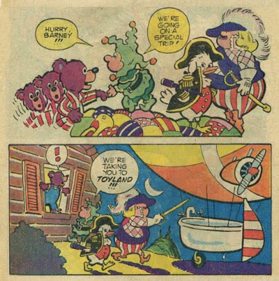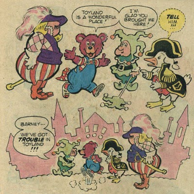 I hope the size of this installment wasn't a problem for anyone. I would have loved to run each page with a paragraph or two of commentary, but that would have been excessive. For anyone who thinks I just cherry picked my images, feel free to view the whole sordid mess here: http://web.archive.org/web/20130422032037/http://www.carpsplace.com/spire/049.%20Barney%20Bear%20in%20Toyland.pdf