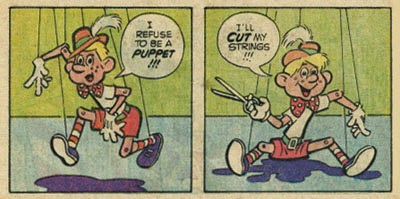 And there's your message, boys and girls. Don't try to be an individual. Follow the instruction book and forget about being a free person without strings.