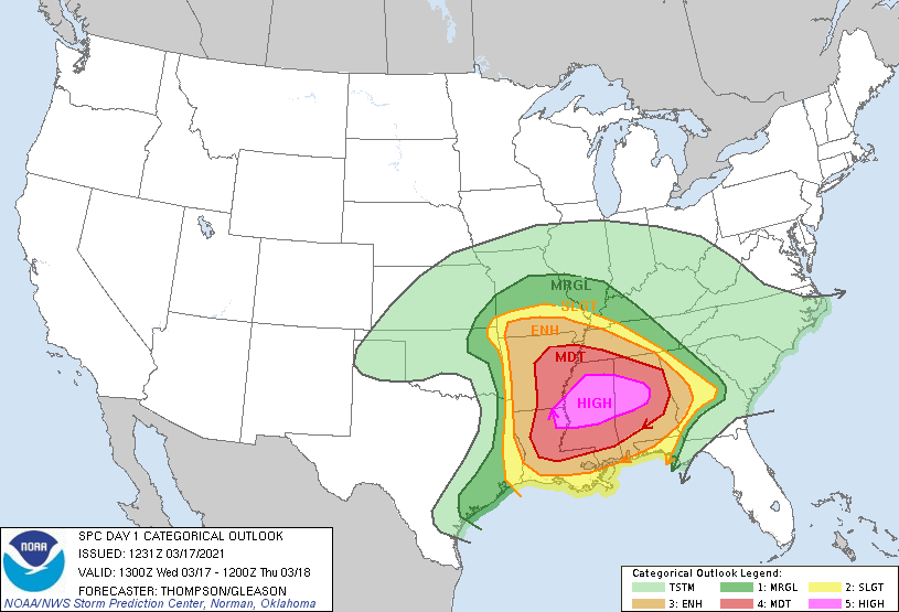 in the area from Arkansas to southern Missouri to western Georgia--especially central Mississippi and Alabama--please keep an eye on the sky. The SPC hasn't issued a High Risk since 2019 and for this area since 2007. It's looking like it's going to be a dangerous day/evening.