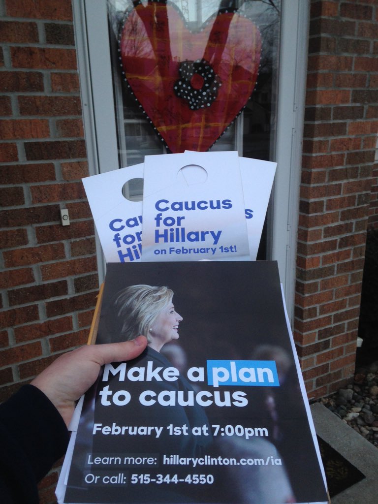 Even with >2 hours until #IAcaucus doors close, @HillaryforIA is still out knocking on doors of Iowans. #HillYes