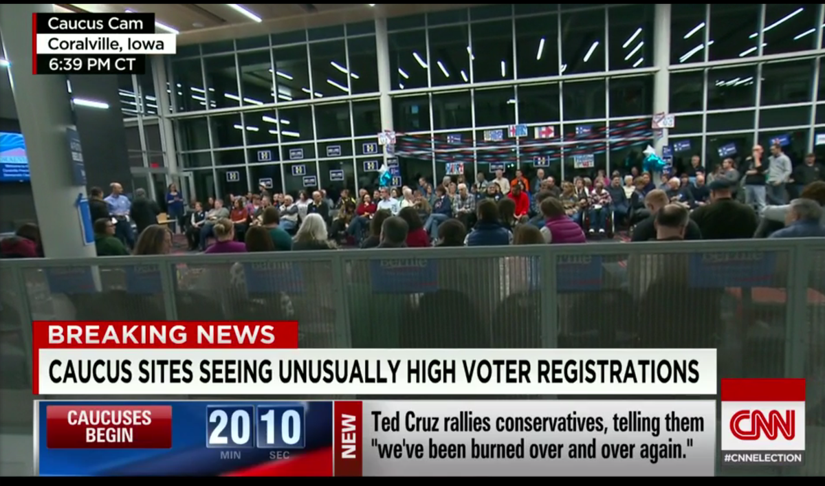 CNN: Iowa precinct captain says "he's never seen so many young voters" before #CaucusForBernie